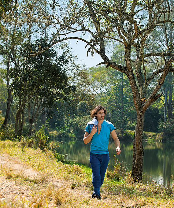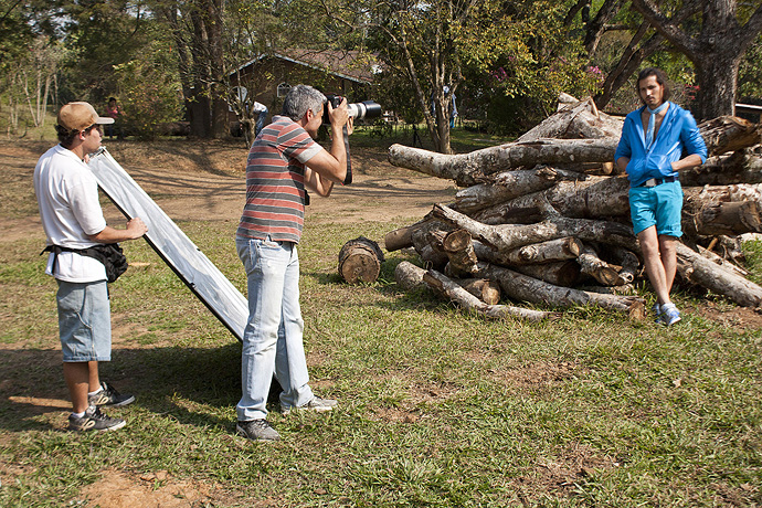 Na foto: O modelo Flávio Vilela e os produtores Marina Torquato e Fábio Paiva conferem o resultado na câmera de Ivan Berger.