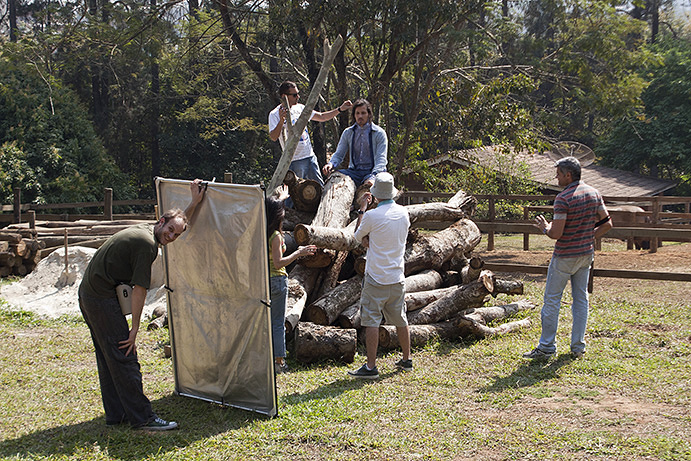 ...e o branquelo se esconde do sol enquanto a cena é montada pela produção.